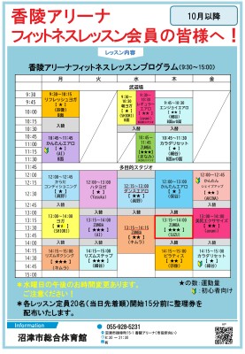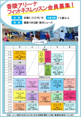 ◆申 込 方 法:香陵アリーナ1階総合受付までお越しください