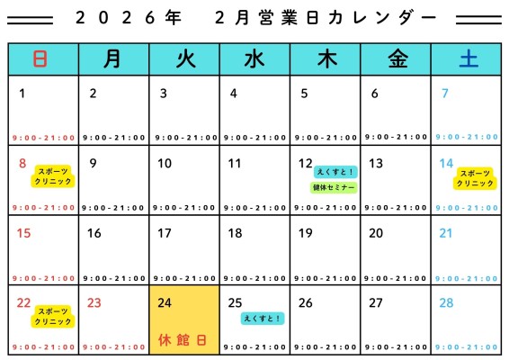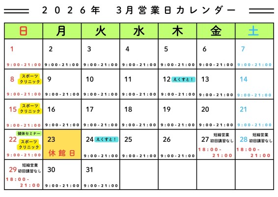 トレーニング室 営業カレンダー