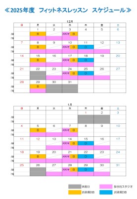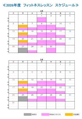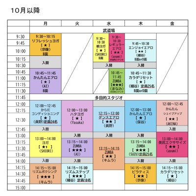 | 内容 | ヨガ・リズムボクシング・ズンバ・ジャズダンス・ヒップホップダンス・エアロ ピラティス等などのフィットネスプログラムを日替わりで実施します。 定額制で、すべてのプログラムに参加できます |