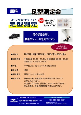 足の状態が気になる方、足やシューズでお悩みの方やインソールにご興味がある方は是非ご参加ください‼