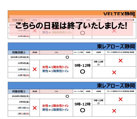 ▪対象日程① 女性=1階女性トイレ/男性=1階多目的トイレ(終了しました)