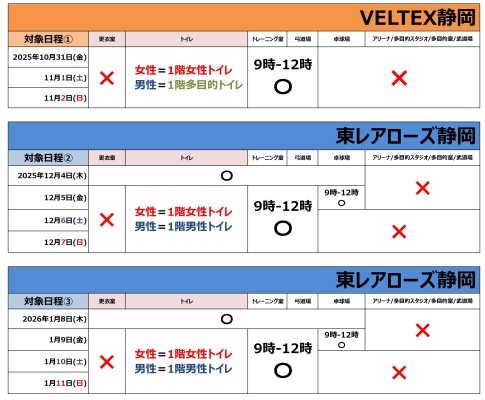 ▪対象日程②③ 女性=1階女性トイレ/男性=1階男性トイレ
